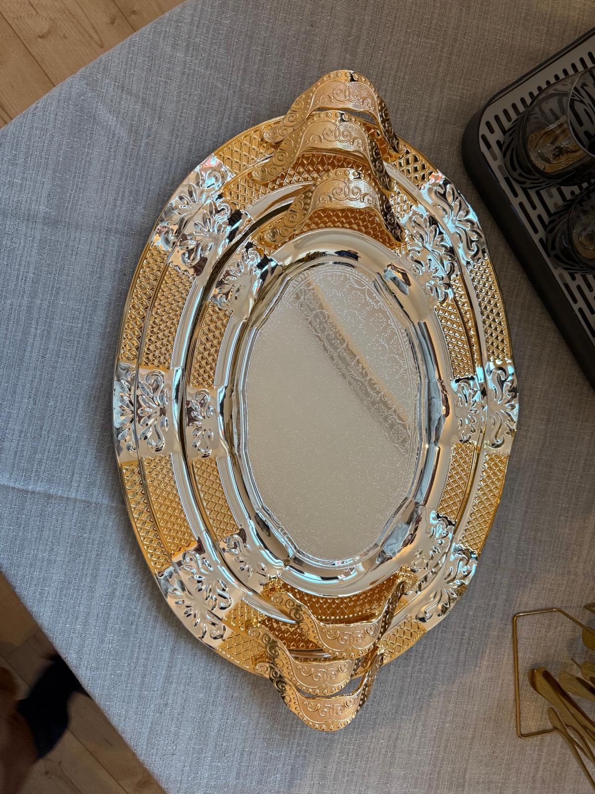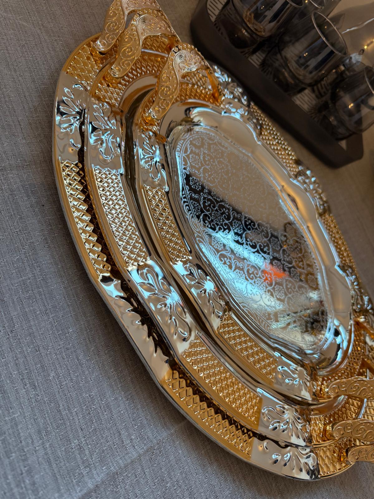 3er-Set gold/silberne gravierte Tabletts