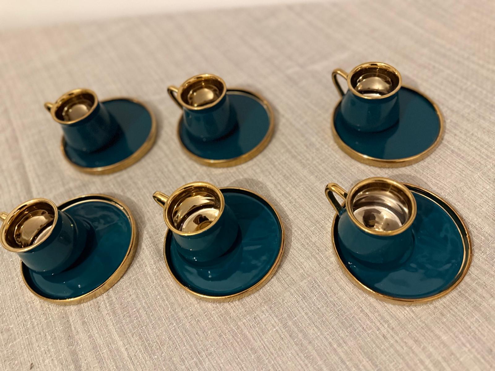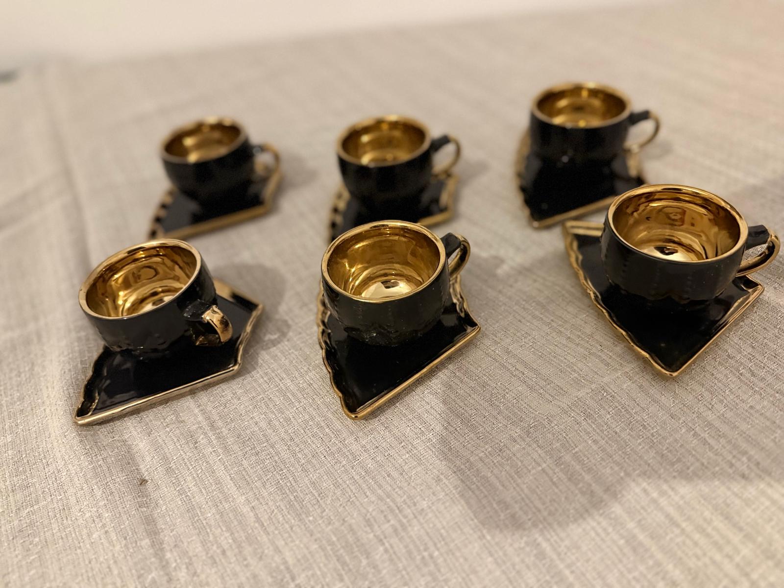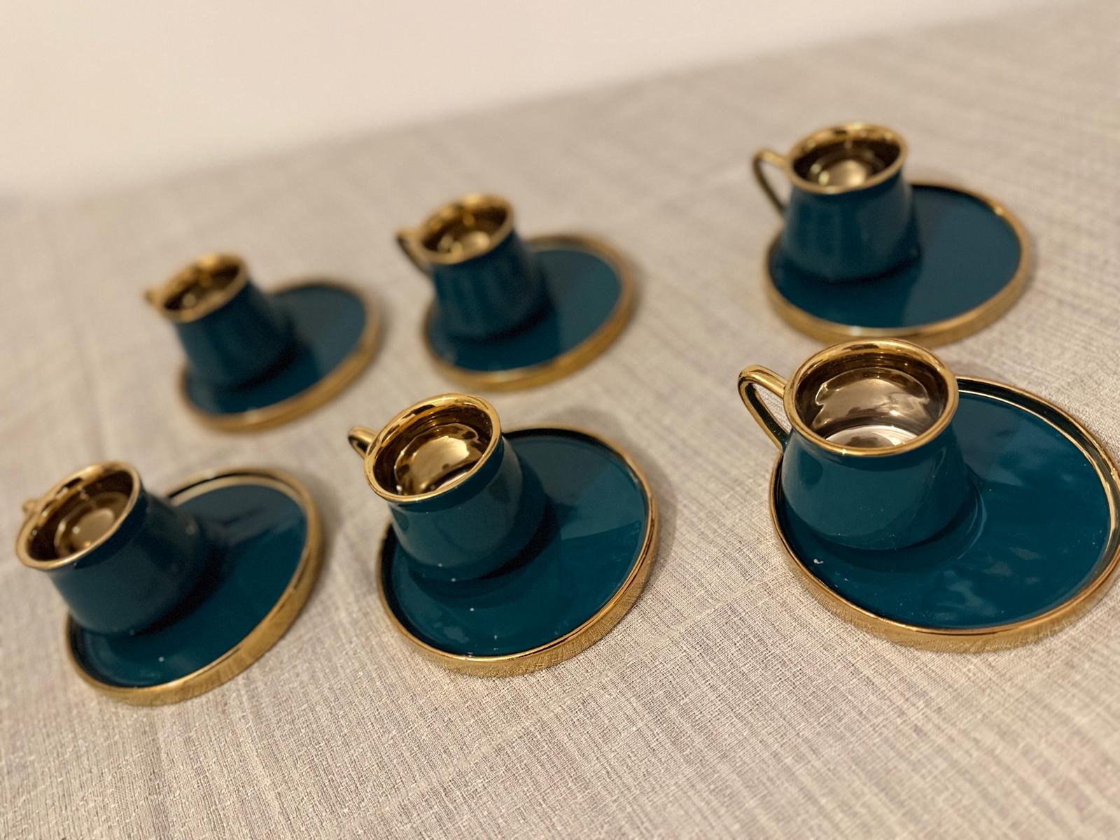 🔹 Türkische/Arabische Mokka-Sets – Oft aus Kupfer oder Messing mit filigranen Verzierungen, bestehend aus einer Cezve (Mokkakanne), Mokkatassen, Untertassen und Tablett.